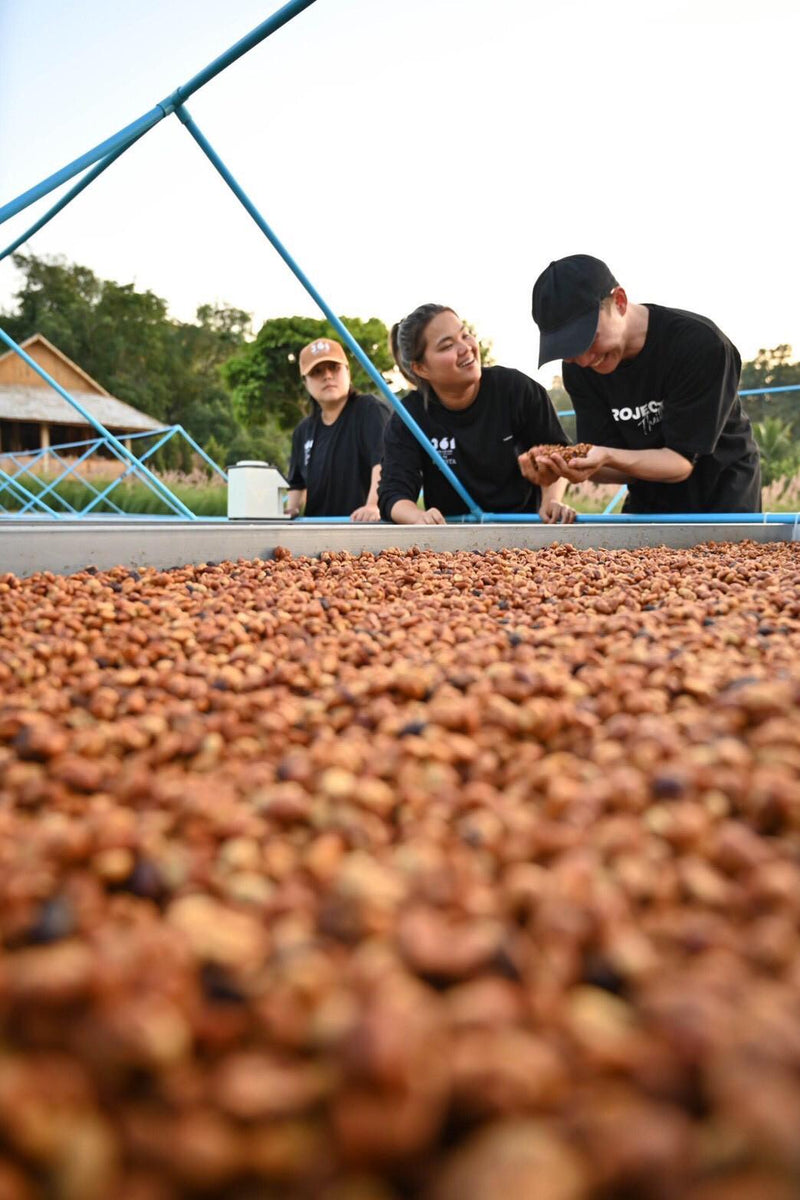 In the cup, our Limited Series Thai is indulgent and expressive. Maraschino cherry and cherry cola lead the profile, supported by a rounded sweetness and a plush, whipped-cream mouthfeel. The acidity is lively yet integrated, and the finish is long, smooth, and gently nostalgic. An inviting reminder of the forest-grown ecosystem from which it comes.
